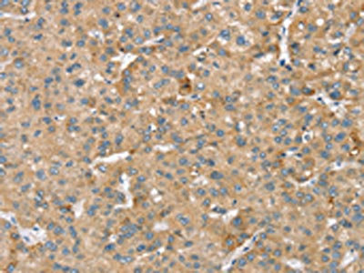 The image on the left is immunohistochemistry of paraffin-embedded Human liver cancer tissue using CSB-PA189826(SMC4 Antibody) at dilution 1/40, on the right is treated with synthetic peptide. (Original magnification: ×200)