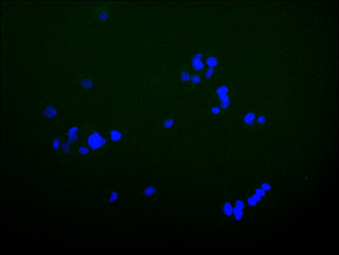Immunofluorescence staining of HepG2 cell with 5% goat serum, counter-stained with DAPI. The cells were fixed in 4% formaldehyde and blocked in 10% normal Goat Serum. The cells were then incubated with the antibody overnight at 4C. The secondary antibody was Alexa Fluor 488-congugated AffiniPure Goat Anti-Rabbit IgG(H+L).