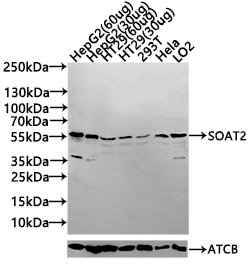 All lanes: SOAT2 antibody at 1:1000