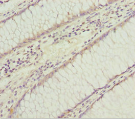Immunohistochemistry of paraffin-embedded human colon cancer using CSB-PA022393ESR2HU at dilution of 1:100
