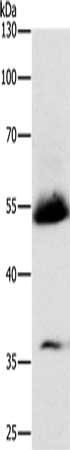 Gel: 10%SDS-PAGE, Lysate: 40 μg, Lane: Human seminoma tissue, Primary antibody: CSB-PA167385(SPAG4 Antibody) at dilution 1/600, Secondary antibody: Goat anti rabbit IgG at 1/8000 dilution, Exposure time: 2 minutes