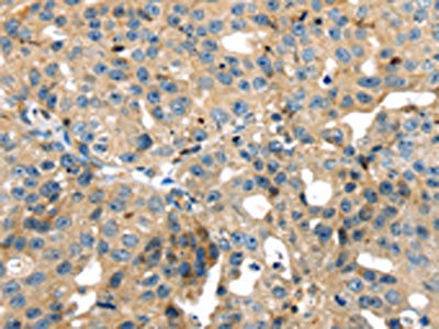 The image on the left is immunohistochemistry of paraffin-embedded Human breast cancer tissue using CSB-PA545504(SRPX Antibody) at dilution 1/35, on the right is treated with fusion protein. (Original magnification: ×200)
