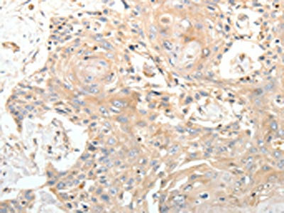 The image on the left is immunohistochemistry of paraffin-embedded Human esophagus cancer tissue using CSB-PA269128(STX1A Antibody) at dilution 1/20, on the right is treated with synthetic peptide. (Original magnification: ×200)