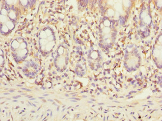 Immunohistochemistry of paraffin-embedded human small intestine tissue using CSB-PA022903DSR2HU at dilution of 1:100