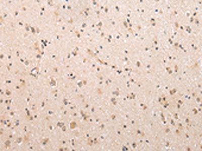 The image on the left is immunohistochemistry of paraffin-embedded Human brain tissue using CSB-PA870303(SWAP70 Antibody) at dilution 1/20, on the right is treated with fusion protein. (Original magnification: ×200)