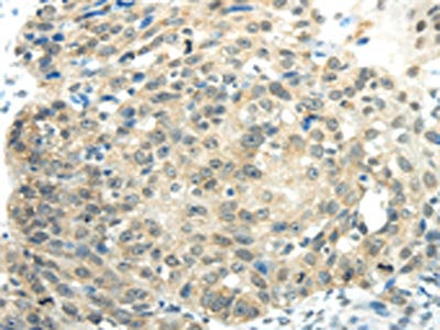 The image on the left is immunohistochemistry of paraffin-embedded Human esophagus cancer tissue using CSB-PA124592(SYNCRIP Antibody) at dilution 1/30, on the right is treated with synthetic peptide. (Original magnification: ×200)