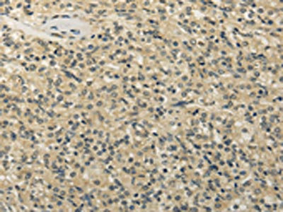 The image on the left is immunohistochemistry of paraffin-embedded Human liver cancer tissue using CSB-PA945697(TBC1D22A Antibody) at dilution 1/20, on the right is treated with fusion protein. (Original magnification: ×200)