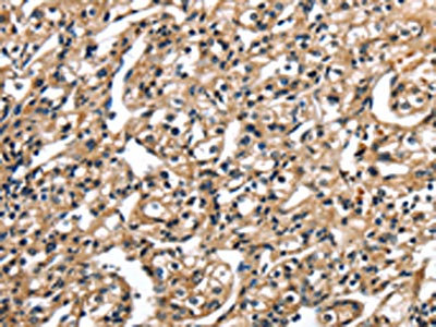 The image on the left is immunohistochemistry of paraffin-embedded Human prostate cancer tissue using CSB-PA199259(TBX10 Antibody) at dilution 1/35, on the right is treated with fusion protein. (Original magnification: ×200)