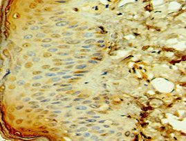 Immunohistochemistry of paraffin-embedded human skin tissue using CSB-PA853425ESR1HU at dilution of 1:100