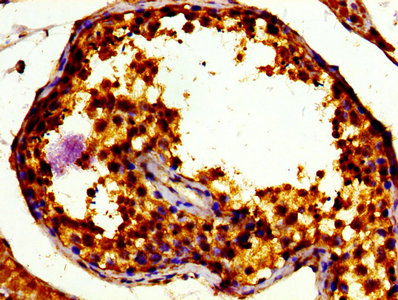 Immunohistochemistry of paraffin-embedded human testis tissue using CSB-PA023428LA01HU at dilution of 1:100