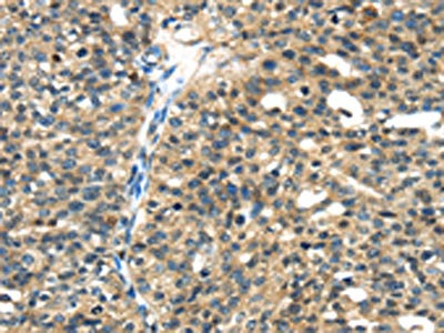 The image on the left is immunohistochemistry of paraffin-embedded Human liver cancer tissue using CSB-PA965532(TGM5 Antibody) at dilution 1/30, on the right is treated with fusion protein. (Original magnification: ×200)