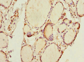 Immunohistochemistry of paraffin-embedded human thyroid tissue using CSB-PA846095ESR1HU at dilution of 1:100