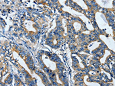The image is immunohistochemistry of paraffin-embedded human gastric cancer tissue using CSB-PA902590(TLR4 Antibody) at dilution 1/25. (Original magnification: ×200)