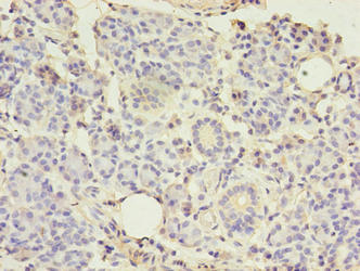 Immunohistochemistry of paraffin-embedded human pancreatic tissue using CSB-PA881018EA01HU at dilution of 1:100