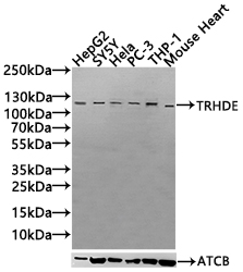 All lanes: TRHDE antibody at 1:1000