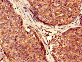 Immunohistochemistry of paraffin-embedded human ovarian cancer using CSB-PA025747LA01HU at dilution of 1:100