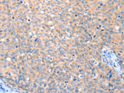 The image on the left is immunohistochemistry of paraffin-embedded Human cervical cancer tissue using CSB-PA698804(VANGL1 Antibody) at dilution 1/20, on the right is treated with fusion protein. (Original magnification: ×200)