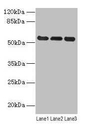 Predicted band size: 54 kDa