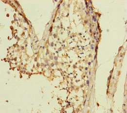 Immunohistochemistry of paraffin-embedded human testis tissue using CSB-PA884447ESR2HU at dilution of 1:100