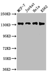 Positive WB detected in: MCF-7 whole cell lysate, Jurkat whole cell lysate, Hela whole cell lysate, K562 whole cell lysate