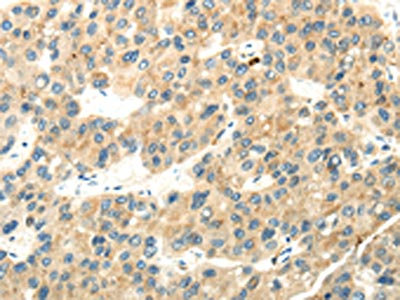 The image on the left is immunohistochemistry of paraffin-embedded Human liver cancer tissue using CSB-PA179135(WDR36 Antibody) at dilution 1/35, on the right is treated with synthetic peptide. (Original magnification: ×200)