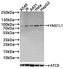 All lanes: YME1L1 antibody at 1:1000