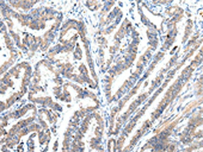 The image on the left is immunohistochemistry of paraffin-embedded Human liver cancer tissue using CSB-PA090580(ZFAND2A Antibody) at dilution 1/30, on the right is treated with synthetic peptide. (Original magnification: ×200)