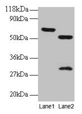 Predicted band size: 64, 57, 51 kDa