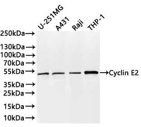 All lanes: Cyclin E2 antibody at 1:1000