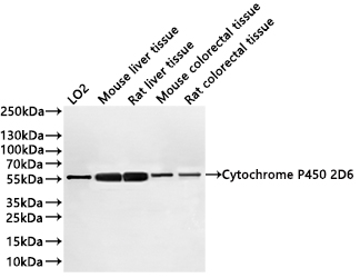 All lanes: Cytochrome P450 2D6 antibody at 1:1000