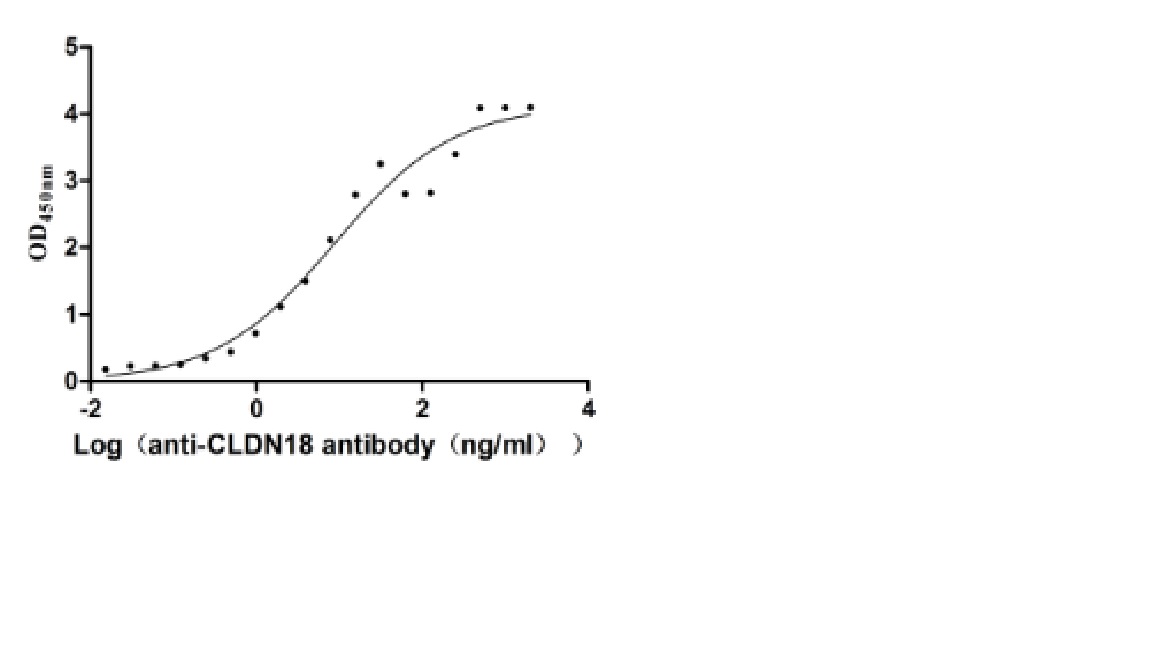Activity: Measured by its binding ability in a functional ELISA. Immobilized Human CLDN18.2 (CSB-MP005498HU(A5)) at 5 μg/mL can bind Anti-CLDN18.2 recombinant antibody, the EC50 is 6.554-27.87 ng/mL.