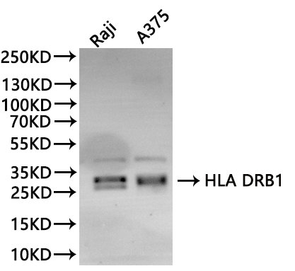 , Positive WB detected in:Raji whole cell lysate(30μg), A375 whole cell lysate(30μg)