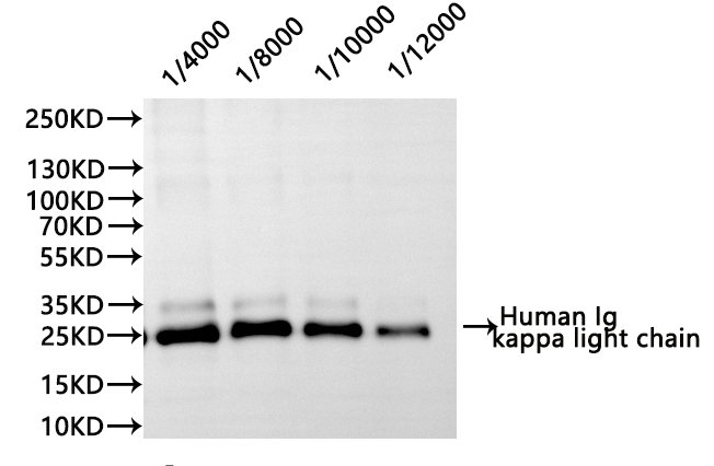 All lanes: Human Ig kappa light chain antibody at 1:1000