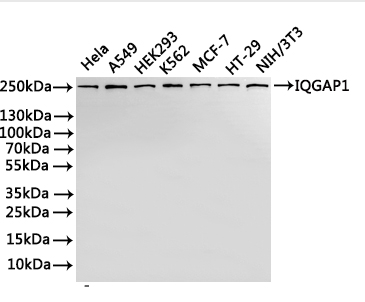 Positive WB detected in: Hela whole cell lysate(30μg), A549 whole cell lysate(30μg), HEK293 whole cell lysate(30μg), K562 whole cell lysate(30μg), MCF-7 whole cell lysate(30μg), HT-29 whole cell lysate(30μg), NIH/3T3 whole cell lysate(30μg)