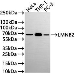 All lanes: LMNB2 antibody at 1:1000