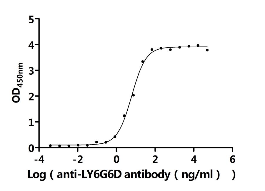 Activity: Measured by its binding ability in a functional ELISA. Immobilized Human LY6G6D (CSB-YP013246HU) at 2 μg/mL can bind Anti-LY6G6D recombinant antibody. The EC50 is 10.57-13.27 ng/mL. -