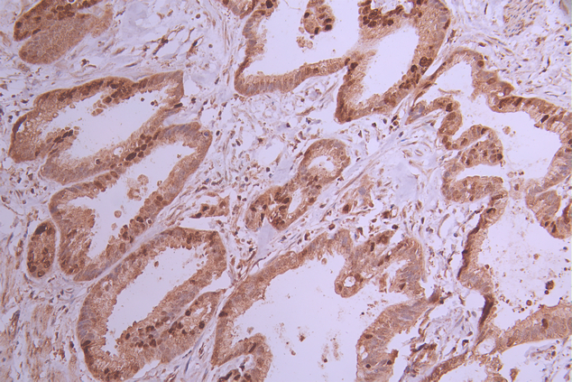 IHC image of CSB-RA986091A0HU diluted at 1:100 and staining in paraffin-embedded human cervical cancer performed on a Leica BondTM system. After dewaxing and hydration, antigen retrieval was mediated by high pressure in a citrate buffer (pH 6.0). Section was blocked with 10% normal goat serum 30min at RT. Then primary antibody (1% BSA) was incubated at 4°C overnight. The primary is detected by a Goat anti-rabbit polymer IgG labeled by HRP and visualized using 0.05% DAB.