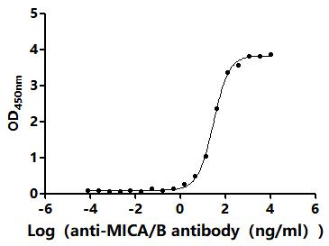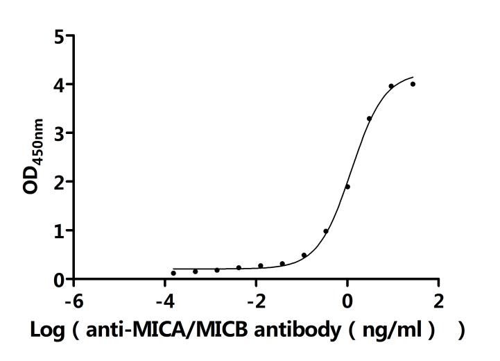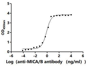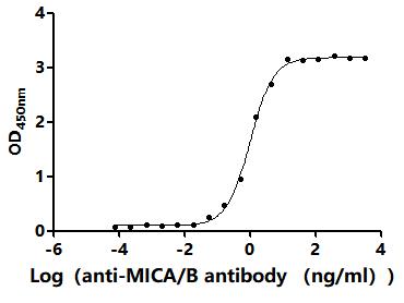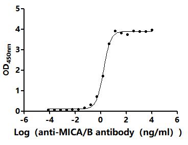 Activity: Measured by its binding ability in a functional ELISA.Immobilized Human MICB(CSB-MP5607HU1) at 2 μg/mL can bind Anti-MICA/B recombinant antibody. The EC50 is 26.77-32.93 ng/mL. -