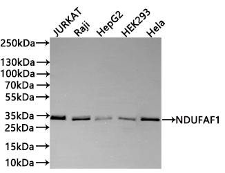 All lanes: NDUFAF1 antibody at 1:1000