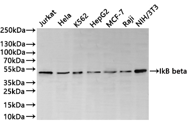 All lanes: IkB beta antibody at 1:1000