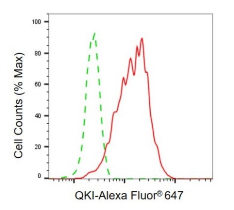 Flow cytometric analysis of QKI expression in C2C12 cells using QKI antibody. Green, isotype control; red, QKI.