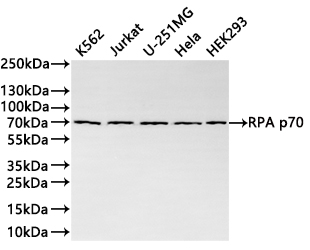 別名:Dmrpa1 antibody; Drosophila Replication Protein A antibody; DRPA antibody; HSSB antibody; Human single stranded DNA binding protein antibody; MST075 antibody; MSTP075 antibody; p70 antibody; REPA1 antibody; Replication factor A antibody; Replication factor A protein 1 antibody; Replication protein A 70 kDa DNA-binding subunit antibody; Replication protein A 70kDa DNA binding subunit antibody; Replication protein A1 70kDa antibody; Replication protein A1 antibody; RF A antibody; RF-A protein 1 antibody; RFA antibody; RFA1_HUMAN antibody; RP A antibody; RP-A p70 antibody; RPA 70 antibody; RPA antibody; rpa1 antibody; Single stranded binding protein 70 antibody; Single-stranded DNA-binding protein antibody