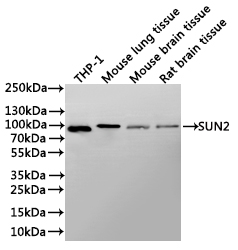 All lanes: SUN2 antibody at 1:1000