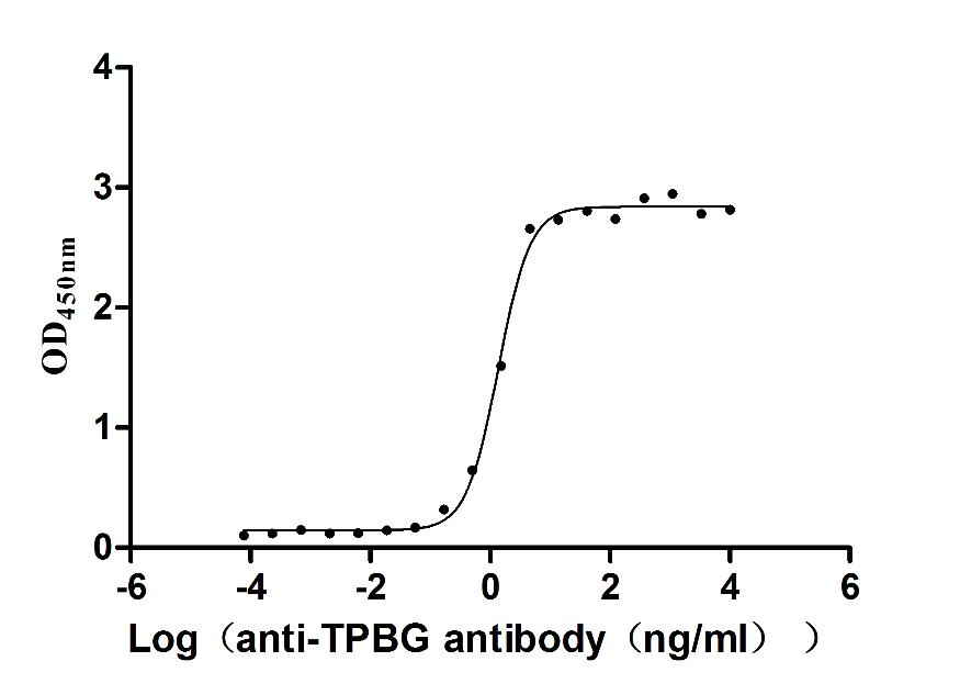 Activity: Measured by its binding ability in a functional ELISA. Immobilized Human TPBG (CSB-MP024093HUB0) at 2 μg/mL can bind Anti-TPBG recombinant antibody, the EC50 is 1.230-1.519 ng/mL. -