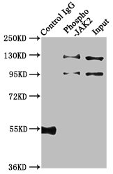 Immunoprecipitating Phospho-JAK2 in Hela whole cell lysate treated with Pervanadate