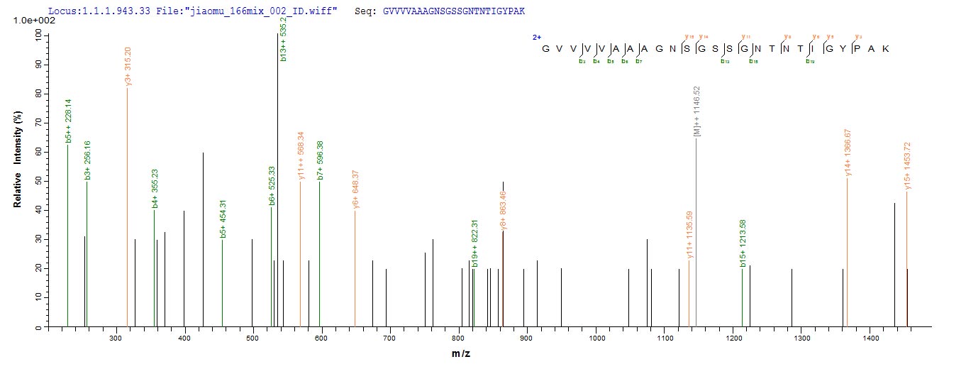 Based on the SEQUEST from database of E.coli host and target protein, the LC-MS/MS Analysis result of CSB-EP365470BQT could indicate that this peptide derived from E.coli-expressed Bacillus licheniformis apr.