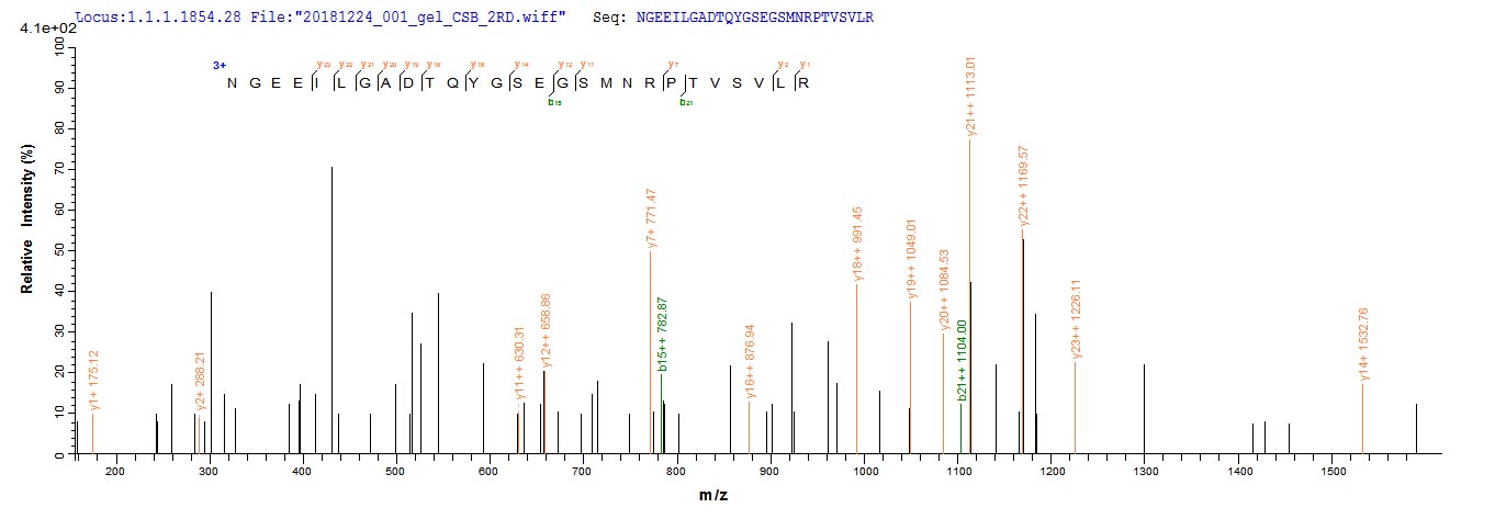 Based on the SEQUEST from database of E.coli host and target protein, the LC-MS/MS Analysis result of CSB-EP319157EDZ could indicate that this peptide derived from E.coli-expressed Enterobacteria phage T4 (Bacteriophage T4) wac.