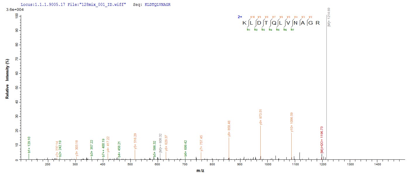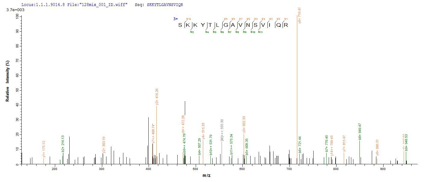 Based on the SEQUEST from database of E.coli host and target protein, the LC-MS/MS Analysis result of CSB-RP144774Ba could indicate that this peptide derived from E.coli-expressed Escherichia coli (strain K12) metC.