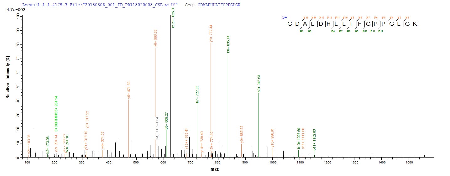 Based on the SEQUEST from database of E.coli host and target protein, the LC-MS/MS Analysis result of CSB-EP364094ENV could indicate that this peptide derived from E.coli-expressed Escherichia coli (strain K12) ruvB.