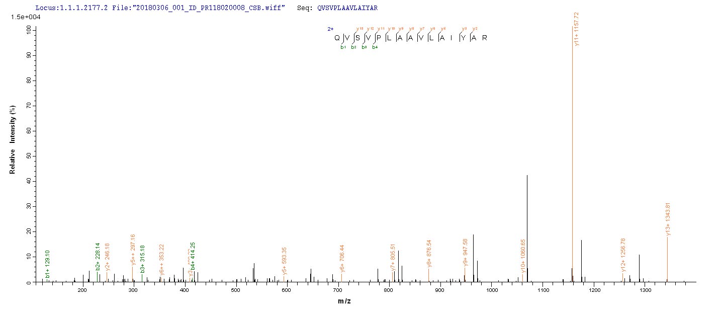 Based on the SEQUEST from database of E.coli host and target protein, the LC-MS/MS Analysis result of CSB-EP360347EOD could indicate that this peptide derived from E.coli-expressed Escherichia coli O157:H7 sspB.